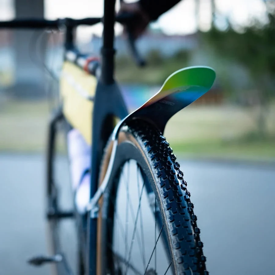 - Hoewel de Win-Wing stevig is, kan hij buigen bij een ongeval en is hij ontworpen om niet vast te lopen als er grote stukken natuur op je wiel terechtkomen.