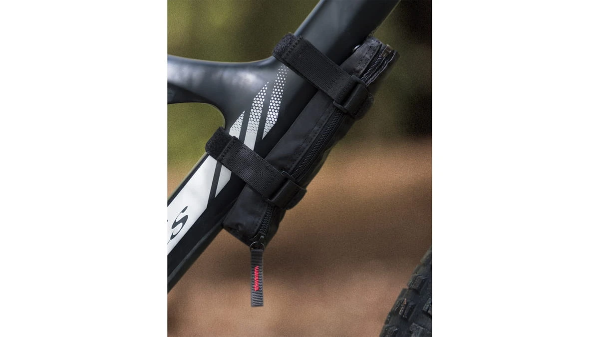 De riemen kunnen op meerdere plaatsen aan het frame worden bevestigd voor een goede pasvorm. Voor een snelle rit naar de stad is een kwart van de rol losgemaakt om te dienen als een handige portemonnee om essentiële zaken in uw zak te houden.
