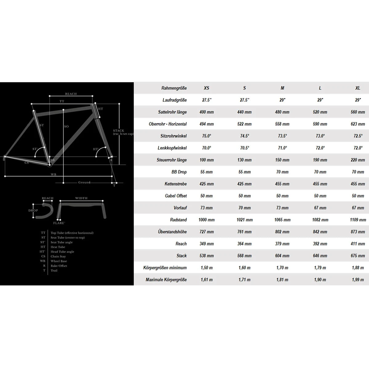 - Banden: XS/S: Panaracer Gravelking SK 48 – 584 | M – XL: Panaracer Gravelking SK 50 – 622