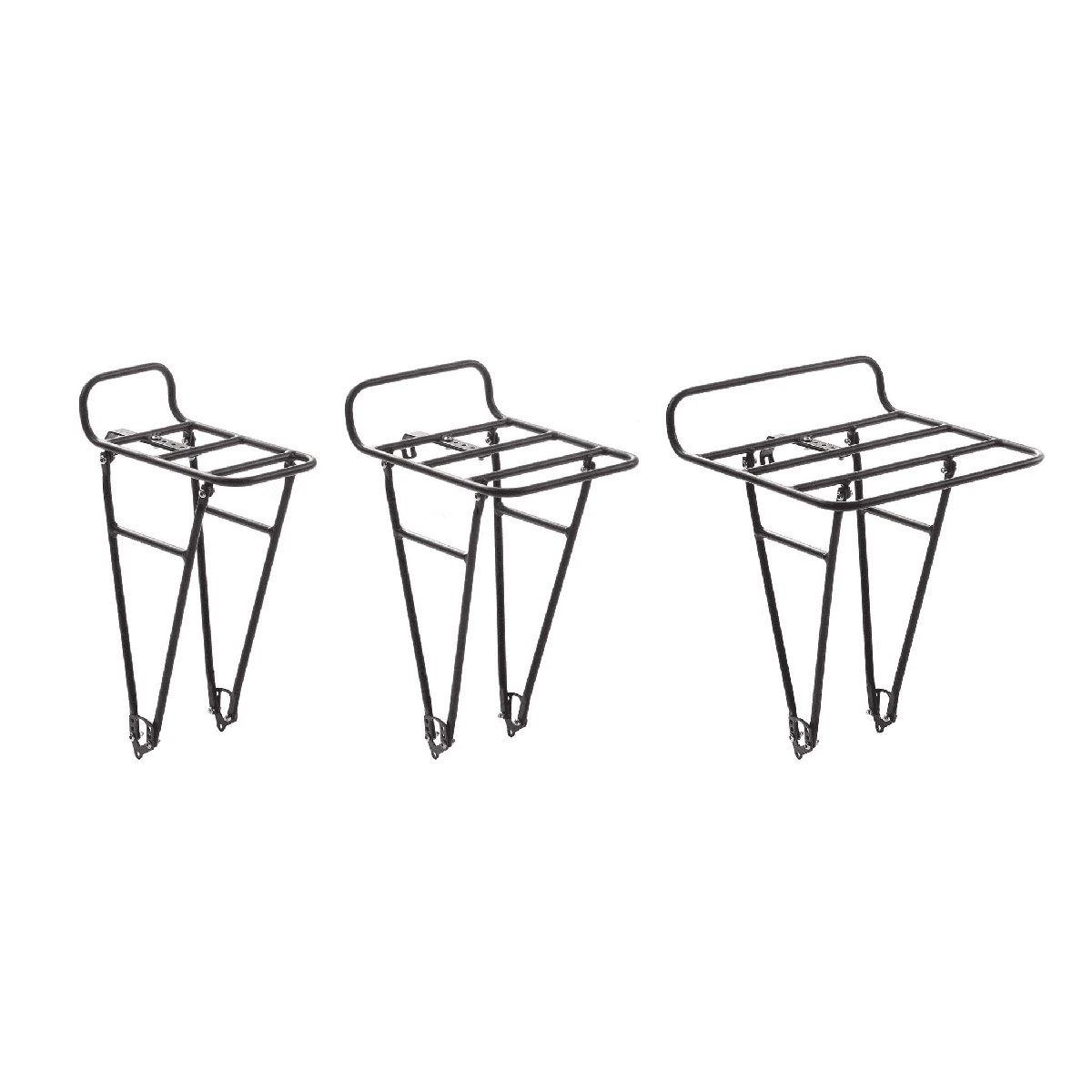 Een nieuwe, lichtere aluminium versie van een allround bagagerek. Hetzelfde klassieke ontwerp is er nu in drie verschillende maten, van een kleine stuurtasdrager tot een full-size bagagedrager. Perfect voor dagelijkse benodigdheden, kampeeruitrusting voor het weekend of een late pizza.