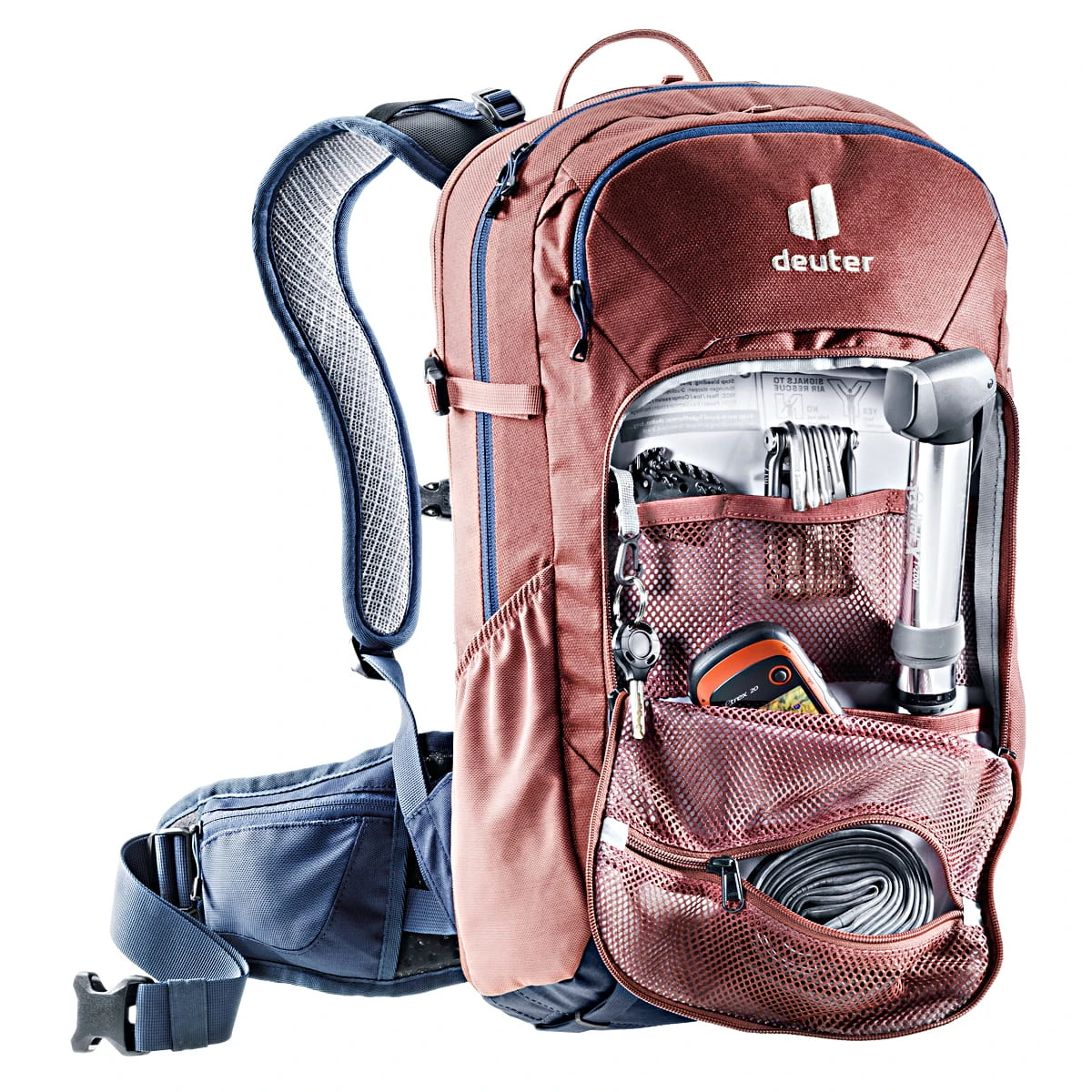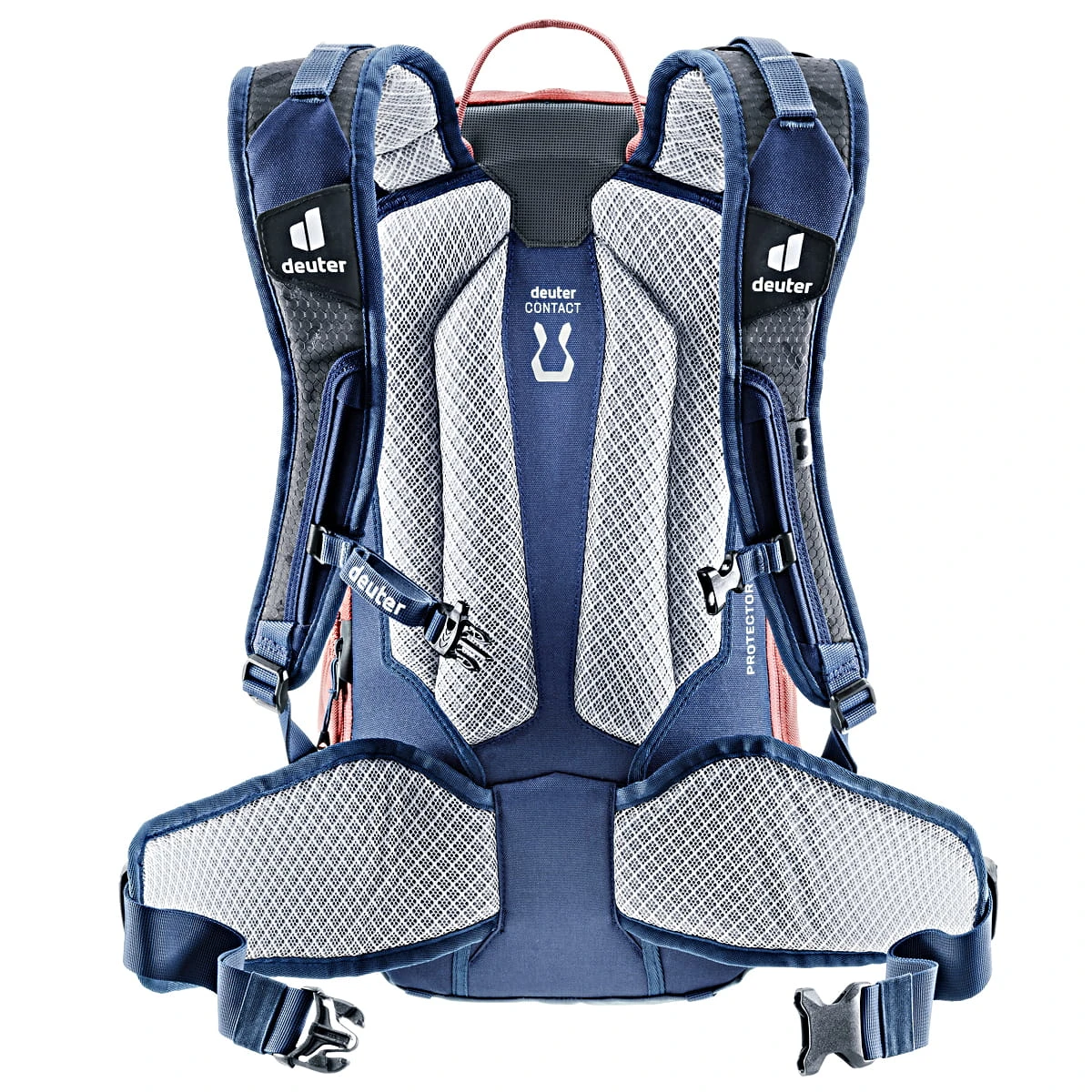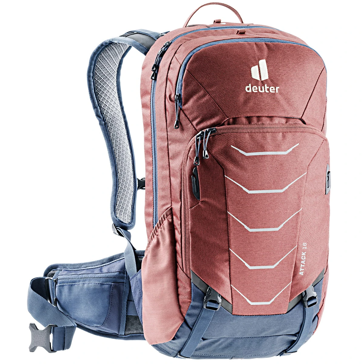 De populaire Attack gaat de volgende generatie in, met een modern design en veel verbeterde functies. Hij is geschikt voor alle ambitieuze mountainbikers en zit altijd stevig en comfortabel, of het nu gaat om de langere tocht of de volgende ruige afdaling. De tailleband kan gemakkelijk worden aangepast met het pull-forward systeem en biedt ook automatische zijcompressie voor een optimale pasvorm. De borstriem is in hoogte en lengte verstelbaar en heeft een geïntegreerd signaalfluitje. Als de fiets ooit moet worden gedragen, heeft de Deuter Attack slijt- en slipbestendig materiaal op het bovenste deel van de rug- en schouderbanden om de rugzak effectief te beschermen tegen beschadigingen en tegelijkertijd te voorkomen dat de fiets eraf glijdt. Hij is ook uitgerust met een verwijderbare SAS-rugbeschermer, die bestaat uit een speciaal schuim dat de best mogelijke bescherming biedt in combinatie met het Attack-draagsysteem. Na vervorming neemt de beschermer zijn oorspronkelijke vorm weer aan. Een helmhouder rondt de uitgebreide kenmerken van de Attack af.