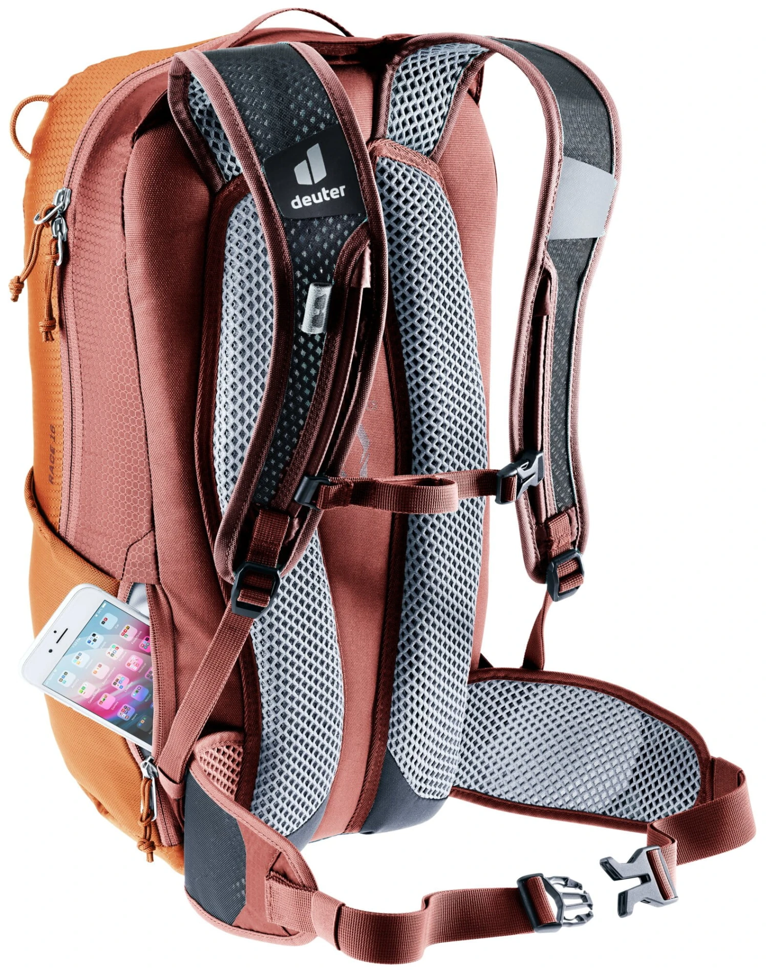 Het luchtdoorlatende Airstripes rugsysteem garandeert een goede ventilatie van de rug en zit zelfs op sportieve trails compact op het lichaam. Bovendien houden de borstband met een nieuwe eenhandige borstbandgesp en de mesh heupvinnen de rugzak optimaal op zijn plaats, zelfs als het er ruig aan toe gaat.