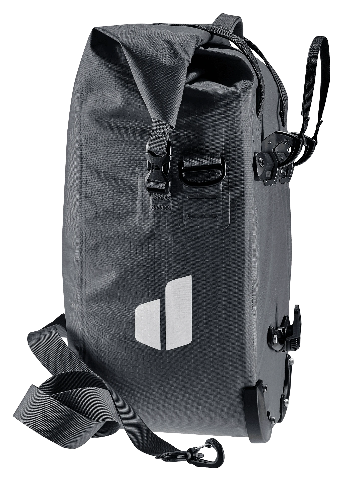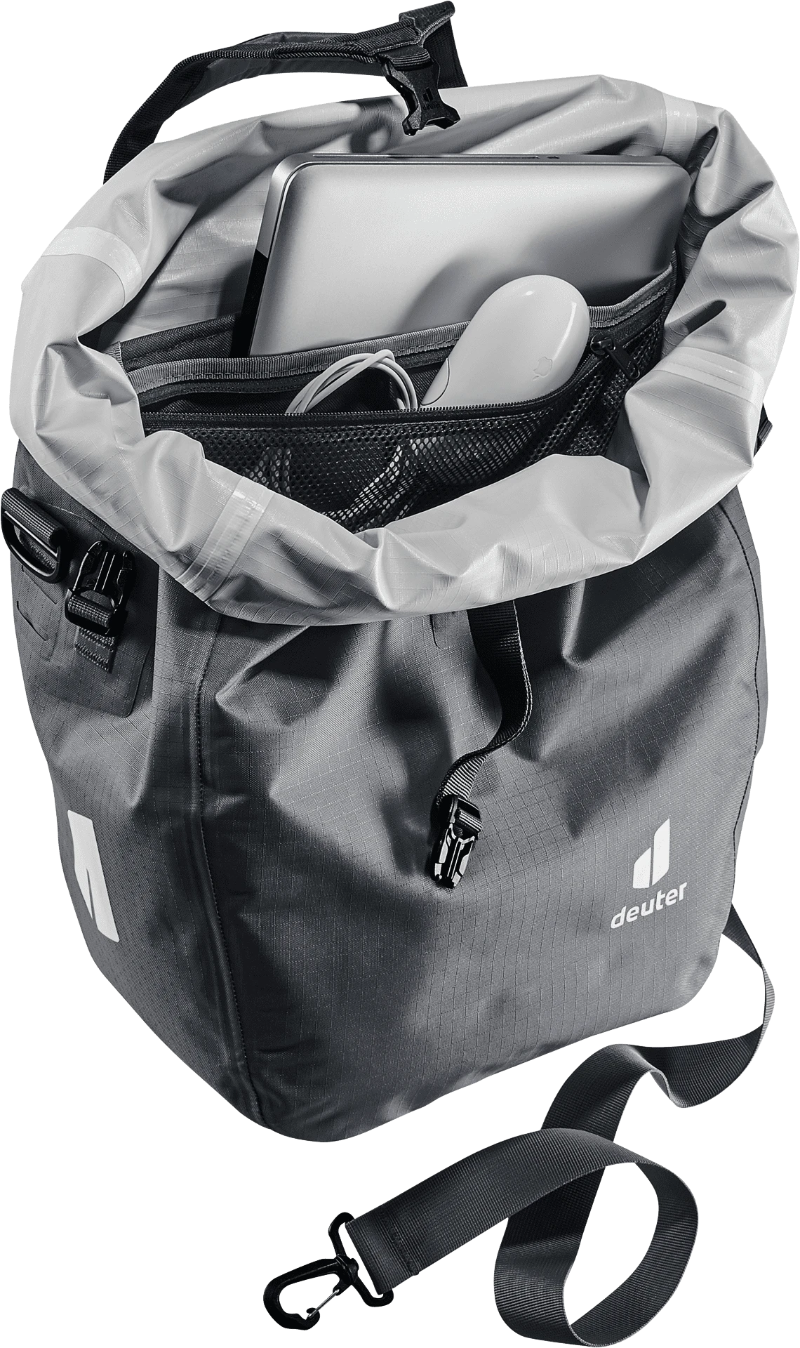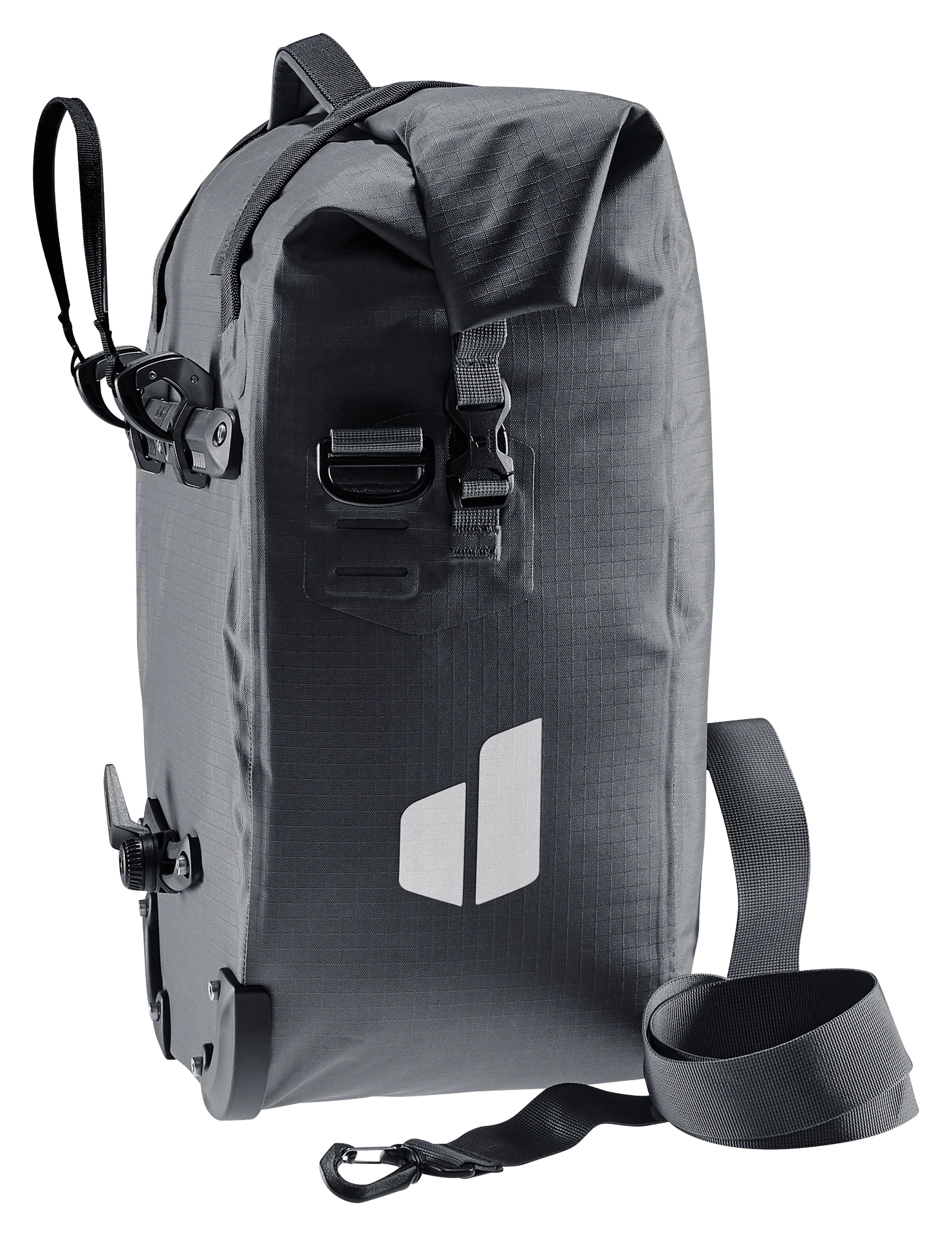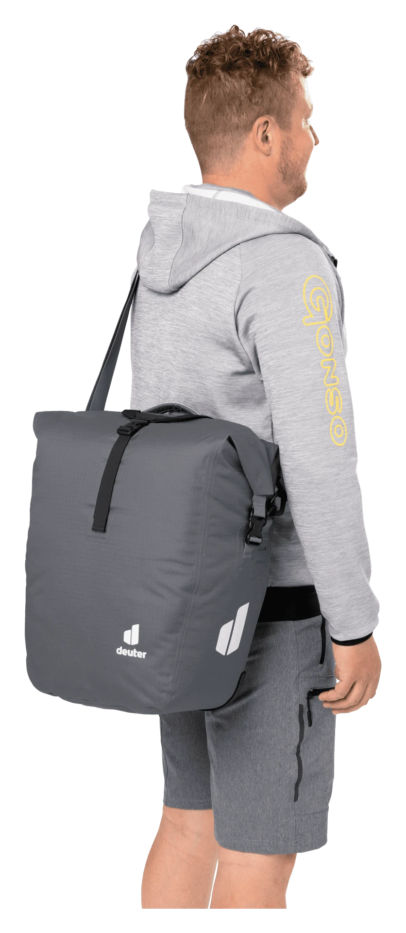 Of pure opbergtas met organizer unit op het achterwiel, grotere schoudertas om om je nek te hangen of praktische draagtas. Dankzij de afneembare schouderriem en verstelbare draaggreepsluiting met universele houder voor slaapmat of jas zijn er nauwelijks grenzen aan het gebruik van deze tas.