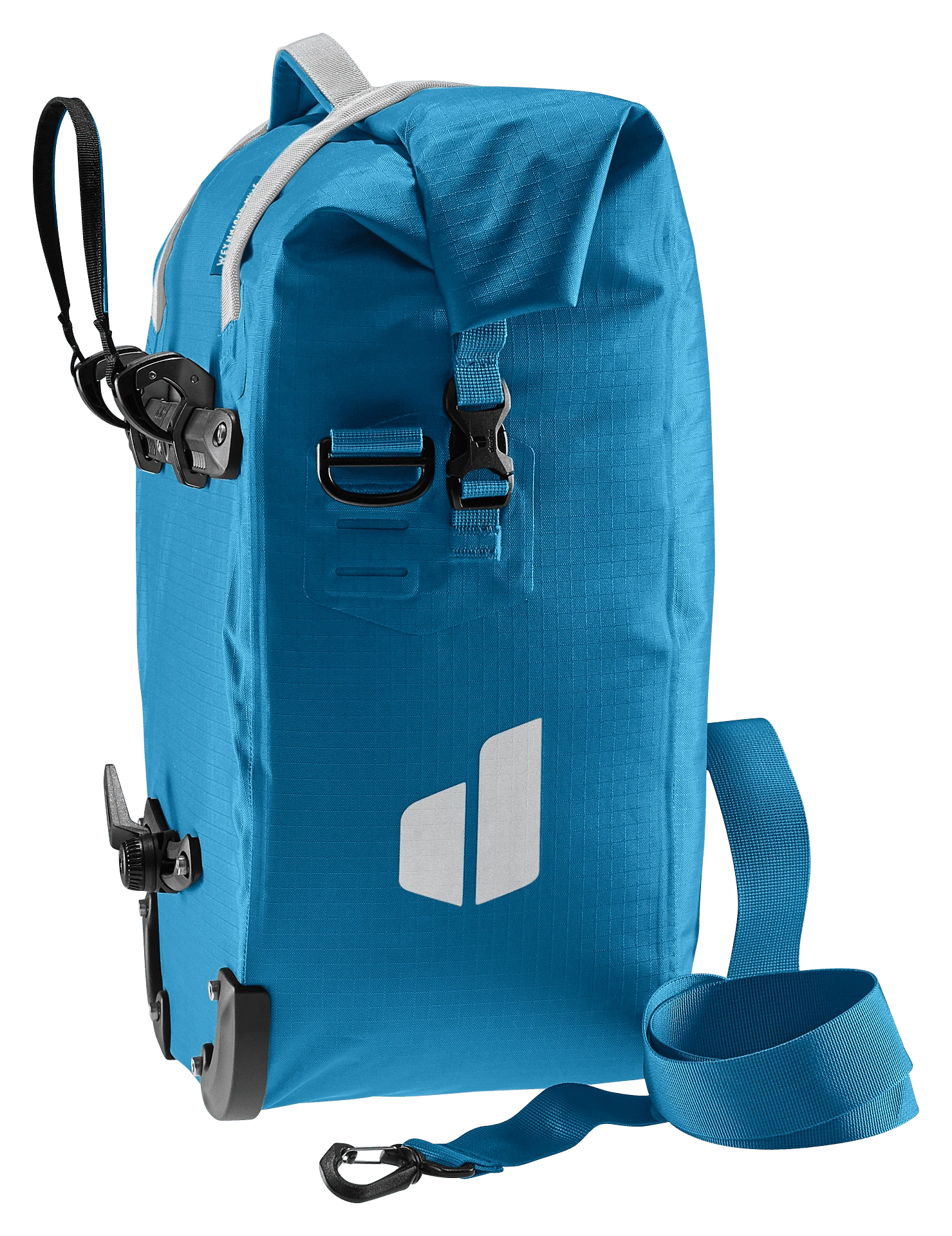 Of pure opbergtas met organizer unit op het achterwiel, grotere schoudertas om om je nek te hangen of praktische draagtas. Dankzij de afneembare schouderriem en verstelbare draaggreepsluiting met universele houder voor slaapmat of jas zijn er nauwelijks grenzen aan het gebruik van deze tas.