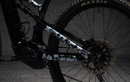 Frame beschermingsset met bedrukt camouflagepatroon. De folie is transparant, zodat u de kleur van uw motorfiets eronder kunt blijven zien.