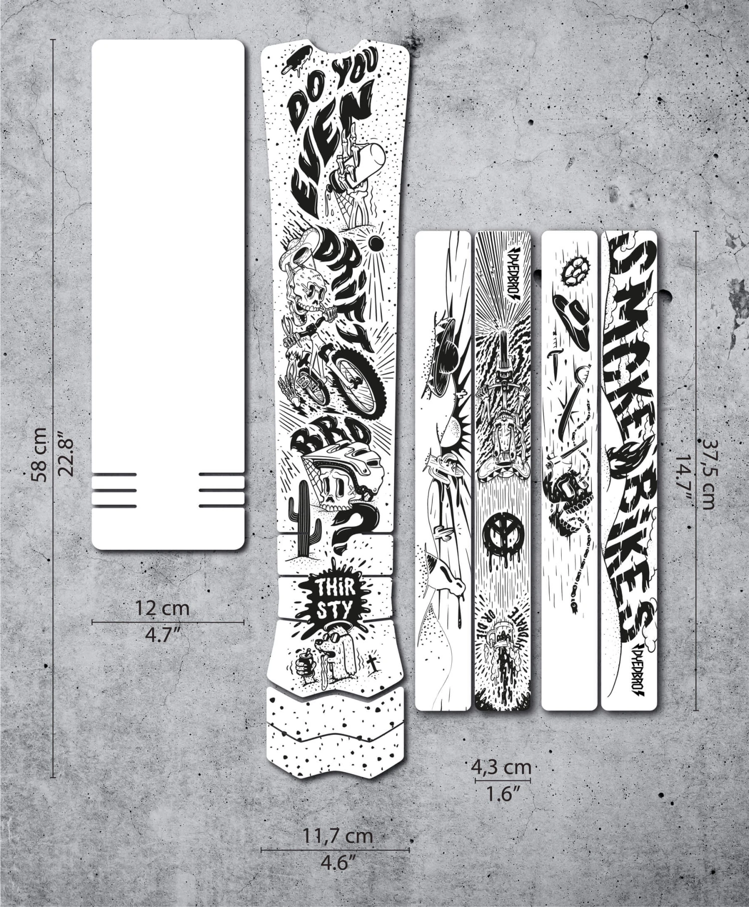 @thisisfluor – Victor Brousseaud is een van de beste illustratoren die er zijn en ook een mountainbike fan. Toen DYEDBRO op zoek ging naar nieuwe ontwerpers en hij zich aanbood, konden ze niet snel genoeg ja zeggen. Het eindproduct dat jullie nu kunnen kopen, verandert je fiets in een kunstwerk. Gemaakt volgens dezelfde topkwaliteit als alle framebeschermingssets.