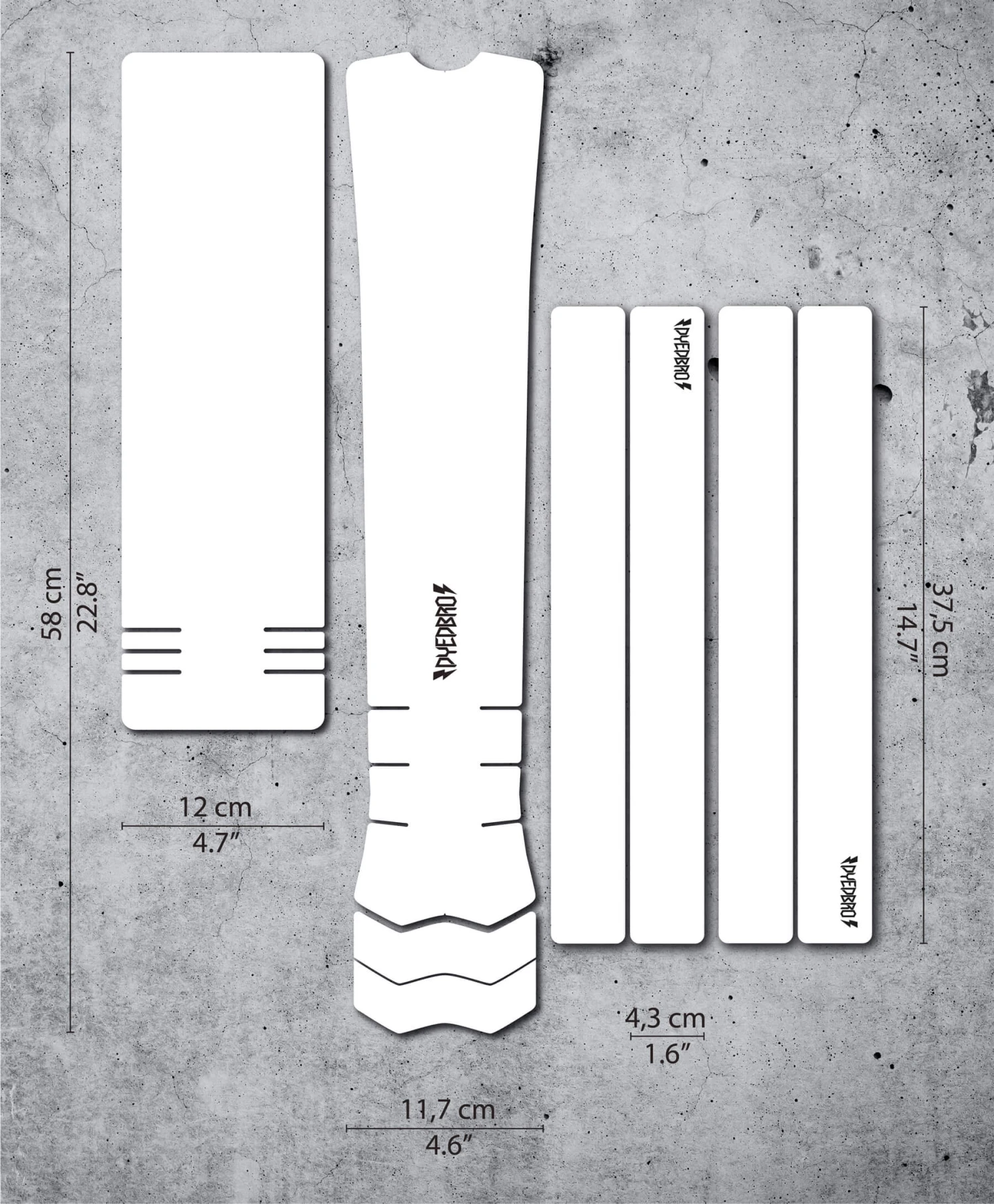 - Ontworpen om de bovenbuis, onderbuis, achtervork en kettingkast te beschermen met een totaal van 8 stuks