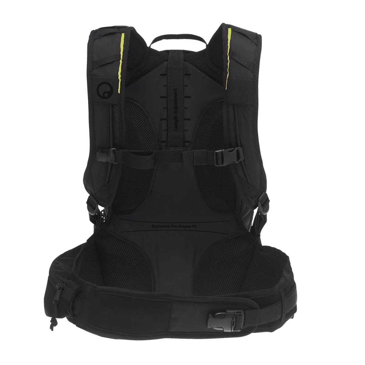 De update van de bestverkochte Ergon-rugzak is nu nog gebruiksvriendelijker. Perfect voor enduro en all-mountain gebruik. Eén voor allen – met het volledig herwerkte 4-voudig verstelbare draagsysteem kan de ruglengte gemakkelijk worden aangepast tussen de maten S tot XL. Dankzij het “Adaptive Carrier System” lastcompressieprincipe en de flexibele aluminium gegoten rail kan de rugzak nog preciezer aan de anatomie van de berijder worden aangepast. De heupgordel kan ook naar behoefte worden ingekort.