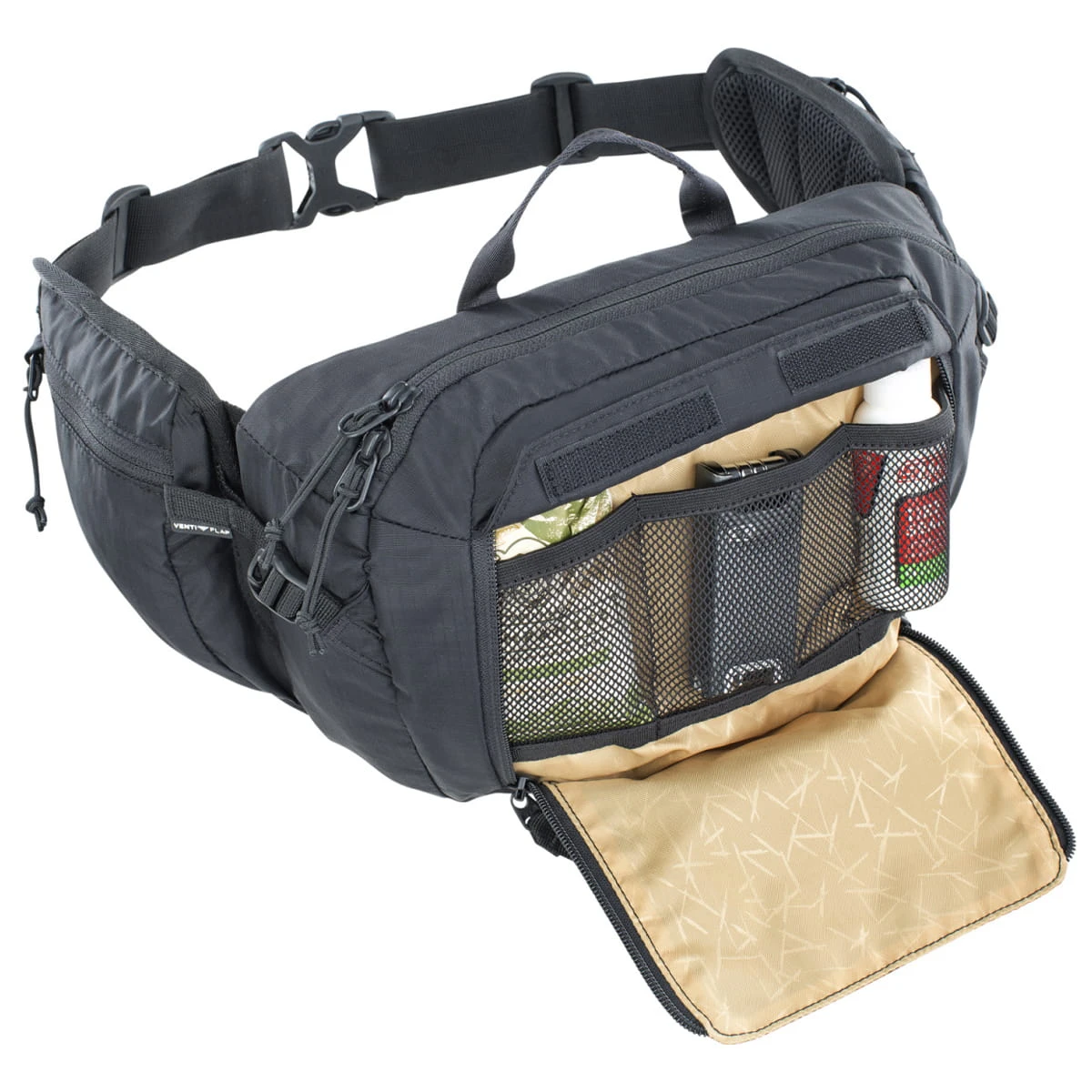 De Evoc Hip Pack wordt geleverd met geoptimaliseerde rugventilatie, ideaal voor fietsrondjes met weinig uitrusting. Met het klep-flapsysteem kunt u de afstand tussen de gordelzak en de rug, en daarmee de ventilatie van het steunvlak, aanpassen.