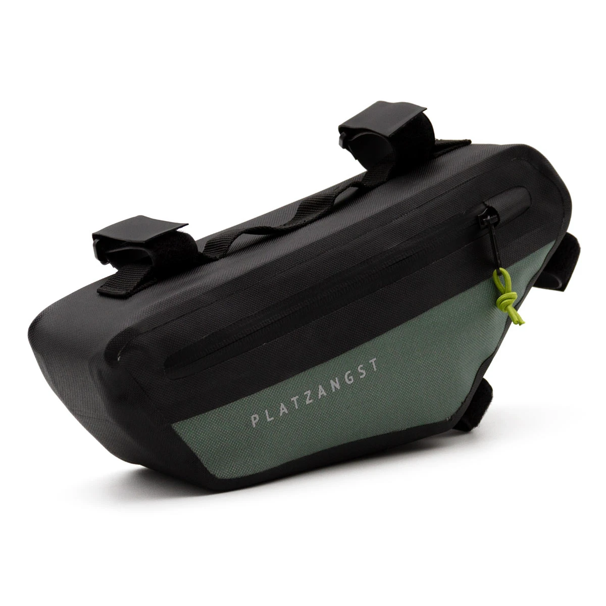 De nieuwe Platzangst Frame Bag Triangle biedt nog meer opbergruimte voor je volgende tour. Onze Frame Bag Triangle van duurzaam en waterdicht nylon kan dankzij de variabele riemen worden gecombineerd met de Frame Bag II. Onze nieuwe tas ziet er ook op zichzelf goed uit en is een aanvulling op ons assortiment frametassen. Met de vormstabiele inleg kunt u uw spullen goed en veilig opbergen. De nieuwe en verbeterde bevestigingsriempjes kunnen rondom worden geplaatst en bieden voldoende houvast. Met een volume van 2,5 liter biedt de Frame Bag Triangle voldoende opbergruimte voor kleding, gereedschap en nog veel meer. Met de gaasvakken aan de binnenkant kunt u kleine spullen nog beter organiseren.