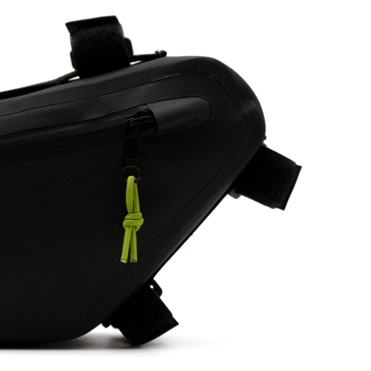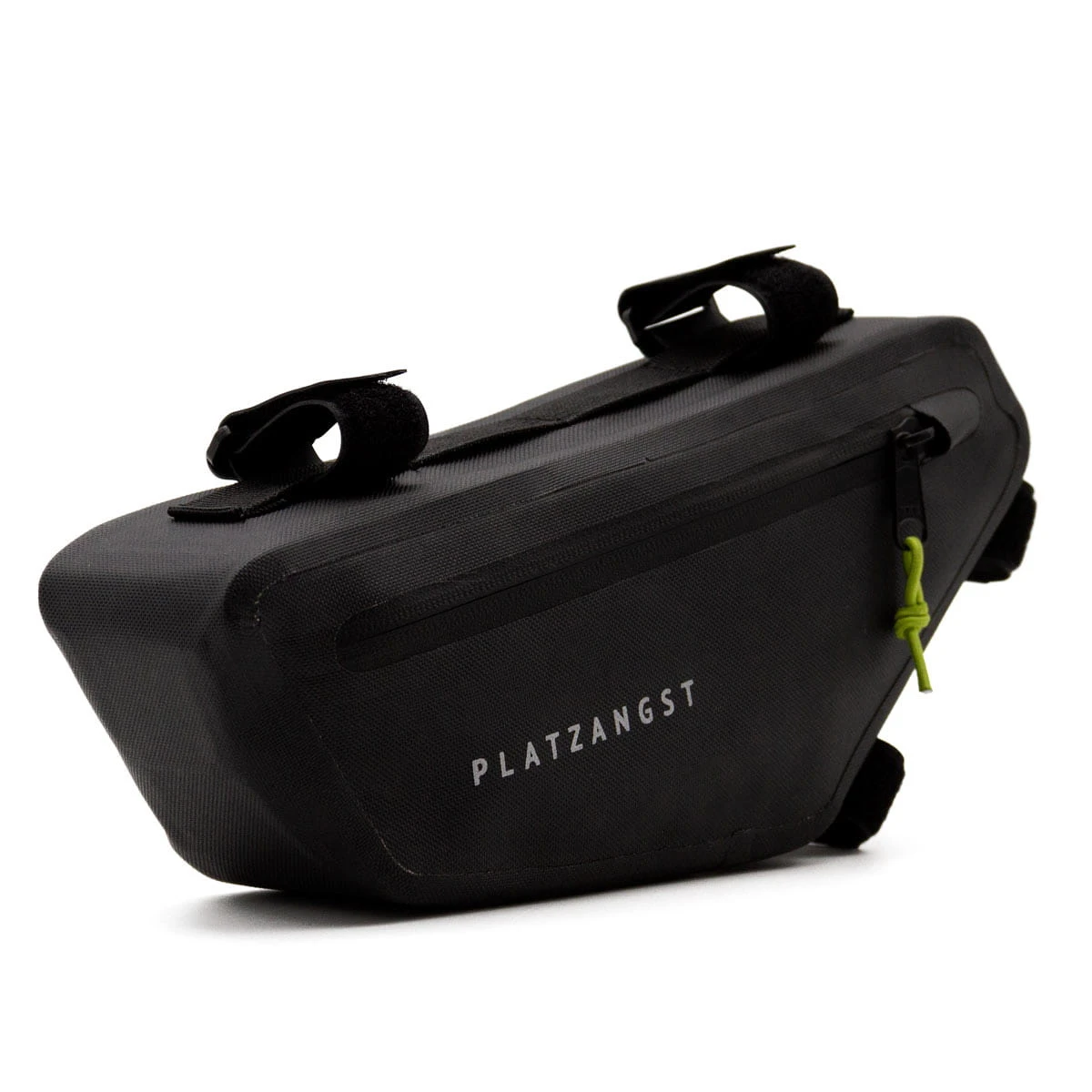 De nieuwe Platzangst Frame Bag Triangle biedt nog meer opbergruimte voor je volgende tour. Onze Frame Bag Triangle van duurzaam en waterdicht nylon kan dankzij de variabele riemen worden gecombineerd met de Frame Bag II. Onze nieuwe tas ziet er ook op zichzelf goed uit en is een aanvulling op ons assortiment frametassen. Met de vormstabiele inleg kunt u uw spullen goed en veilig opbergen. De nieuwe en verbeterde bevestigingsriempjes kunnen rondom worden geplaatst en bieden voldoende houvast. Met een volume van 2,5 liter biedt de Frame Bag Triangle voldoende opbergruimte voor kleding, gereedschap en nog veel meer. Met de gaasvakken aan de binnenkant kunt u kleine spullen nog beter organiseren.