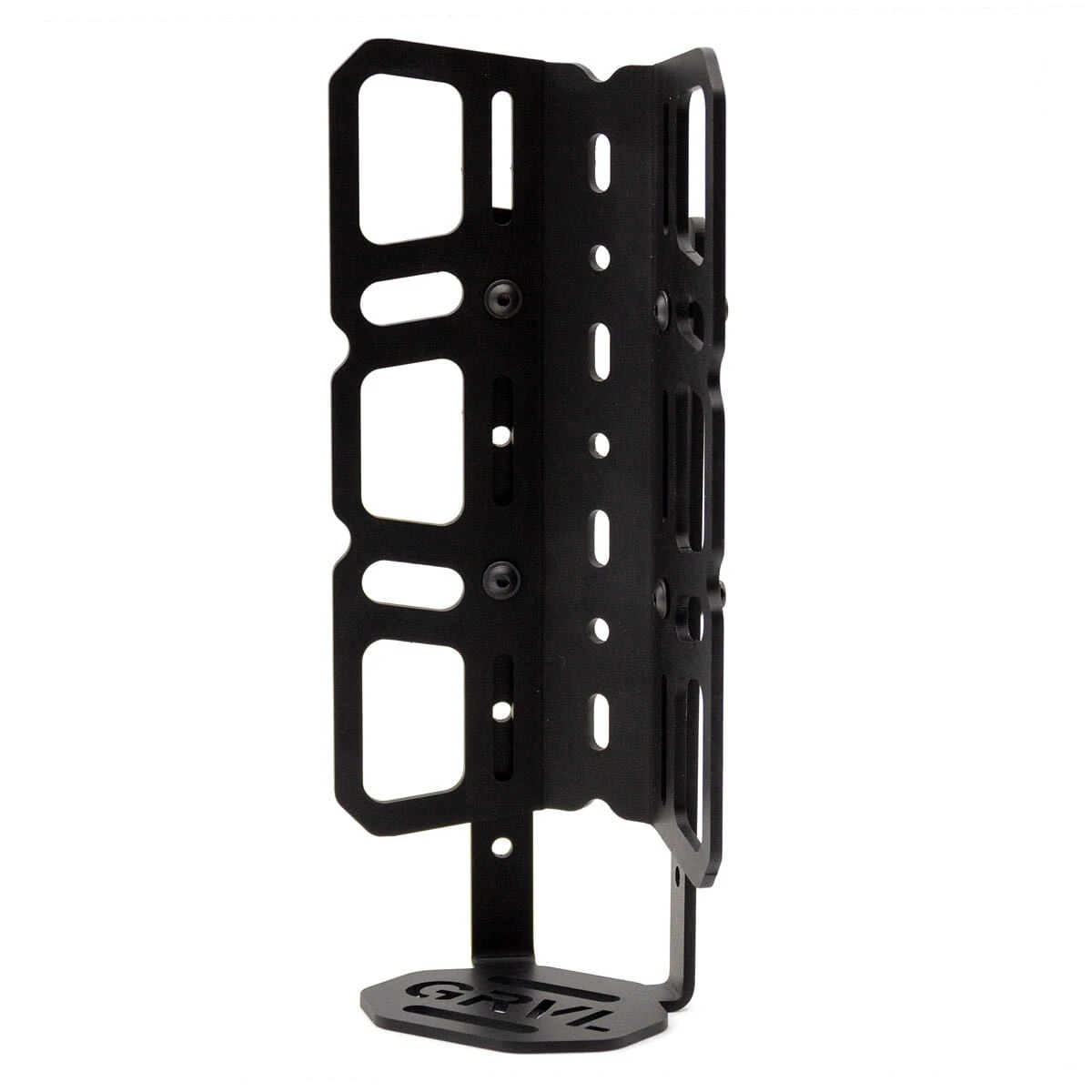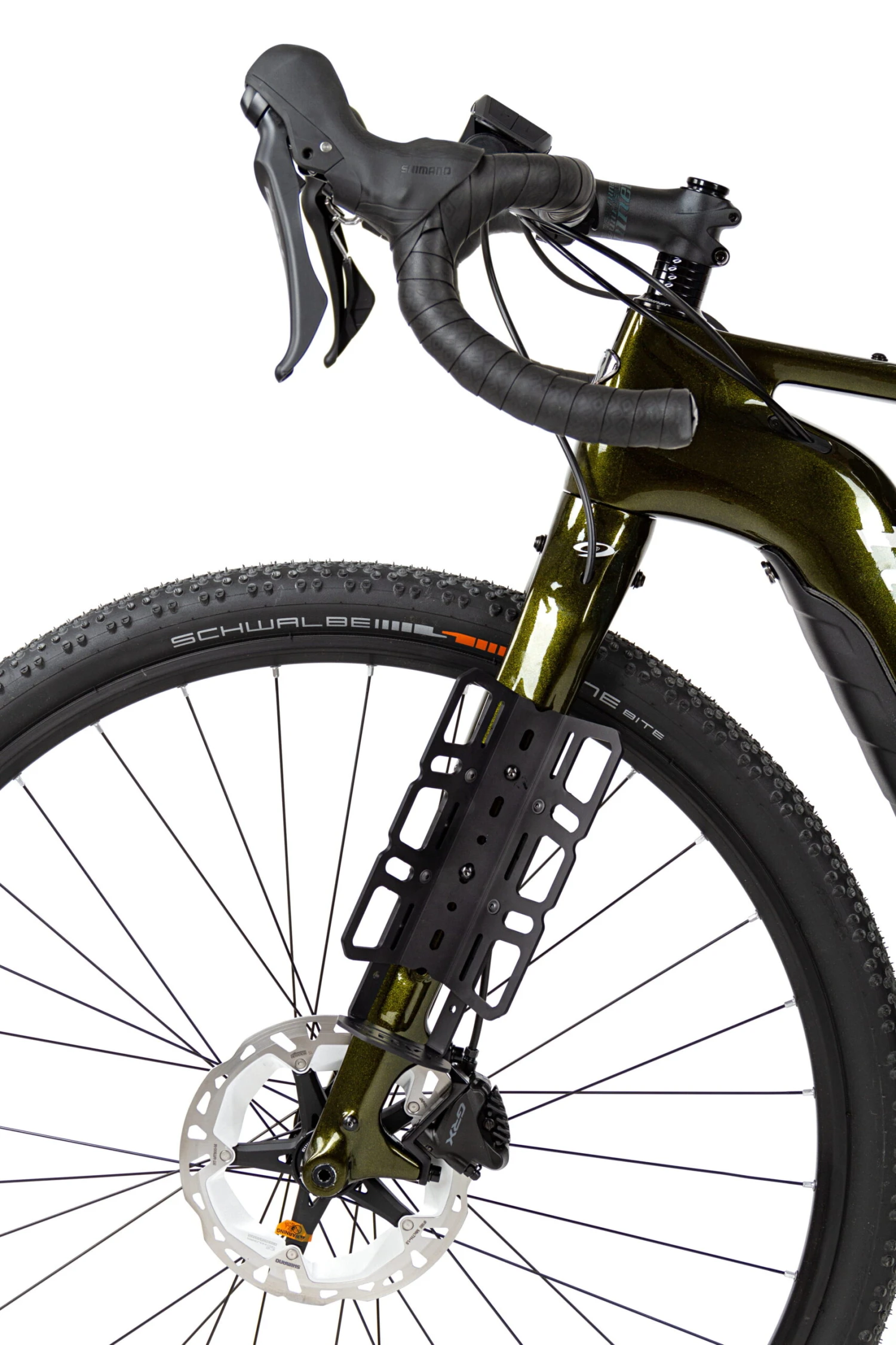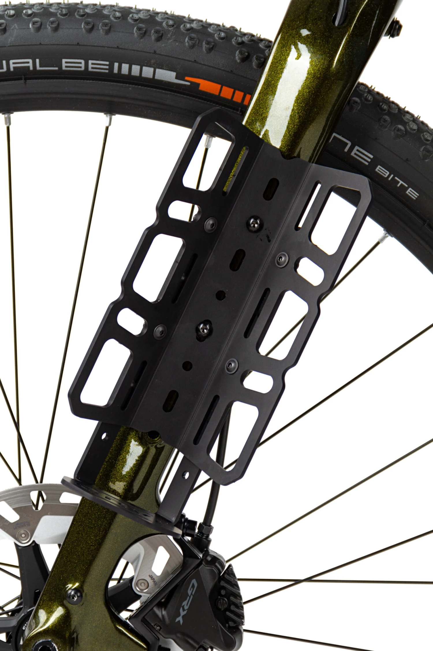 Met de nieuwe Platzangst GRVL CAGE voegen we een nieuw hoogtepunt toe aan onze bikepacking-collectie. De nieuwe GRVL CAGE biedt de perfecte bevestiging voor een breed scala aan bagage. De kooi zelf kan in verschillende posities aan de vork worden bevestigd dankzij de vele bevestigingsmogelijkheden. De innovatieve glijder, die kan worden aangepast aan individuele behoeften, biedt extra ondersteuning. De volledige GRVL CAGE is vervaardigd uit lasergesneden aluminium (ALMG3-W19) en zwart geanodiseerd. De GRVL CAGE is ontworpen en vervaardigd in Duitsland en wordt geleverd in een composteerbare verpakking inclusief vijf bouten en moeren om de kooi en de schuif te bevestigen.