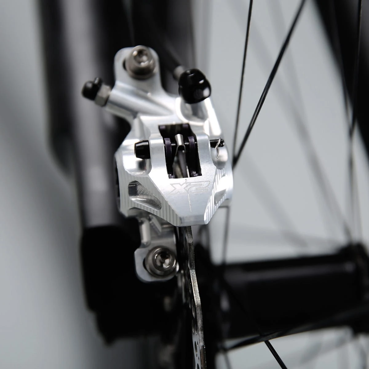 De rem is gekoppeld aan een speciale versie van de X2-remklauw, die is voorzien van aluminium remblokken en een slanke, low-profile geplooide verbinding. Aan het uiteinde van de hefboom zit een conventionele olijf, zodat de slang gemakkelijk kan worden ingekort.