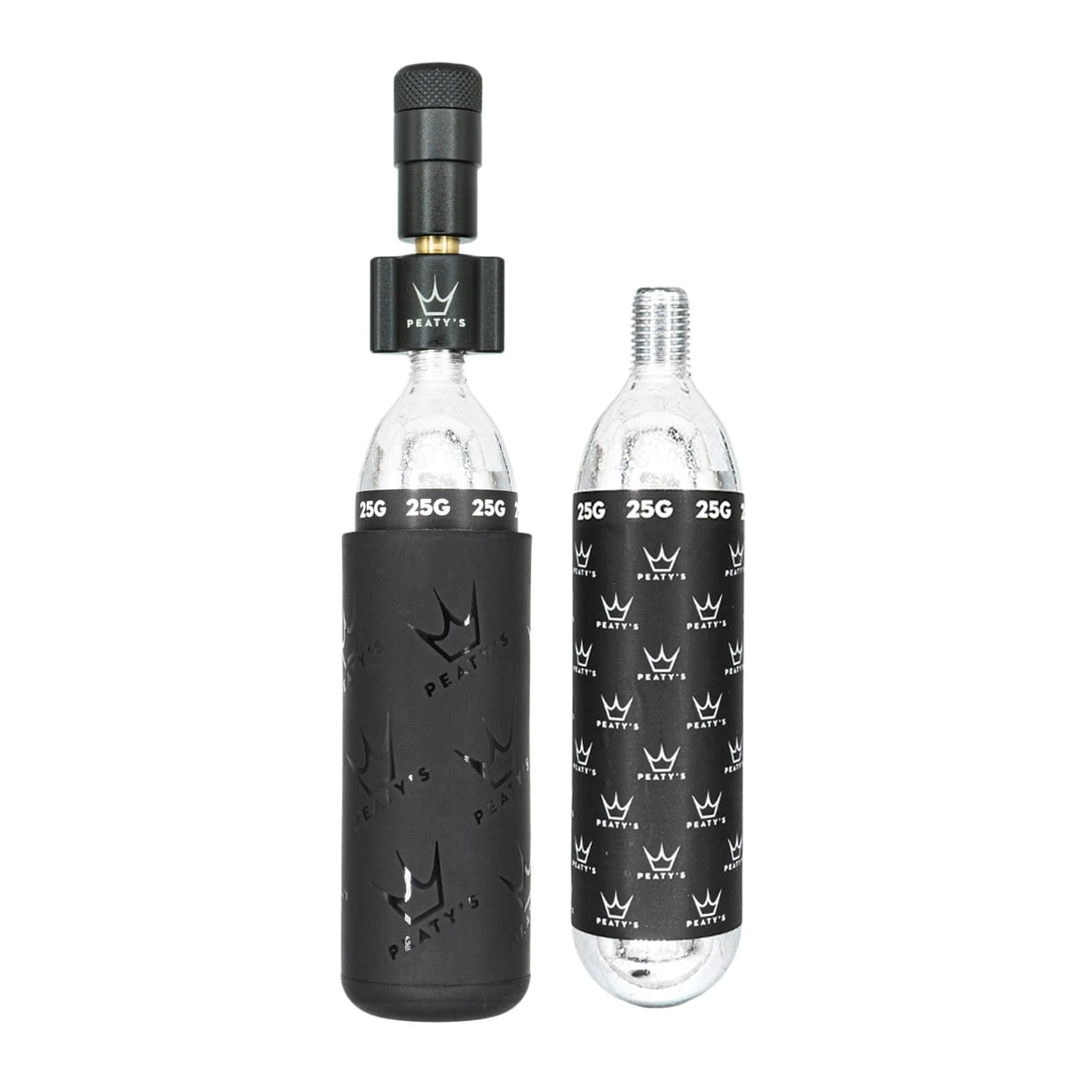Het is zo klein en licht mogelijk, zodat het gemakkelijk in uw tas, rugzak of op de fiets past. Gemaakt van CNC gefreesd 6061 aluminium, met een ventielontwerp waarvoor patent is aangevraagd, zijn de details van Peaty’s luchtpompkoppen zorgvuldig vervaardigd – van de exacte rubbersamenstelling van de O-ringen tot de fantastische Chris King geanodiseerde kleuren. Peaty’s heeft dezelfde aandacht voor detail en kwaliteit toegepast op de vervaardiging van een hoogwaardige CO2 patroonhuls. Verre van een goedkope neopreenstrip is de antivrieshoes gemaakt van temperatuurbestendige siliconen en heeft een uniek gesloten oppervlak dat voorkomt dat uw hand aan het patroon vastvriest, hoe u het ook vasthoudt – zelfs zonder handschoenen.
