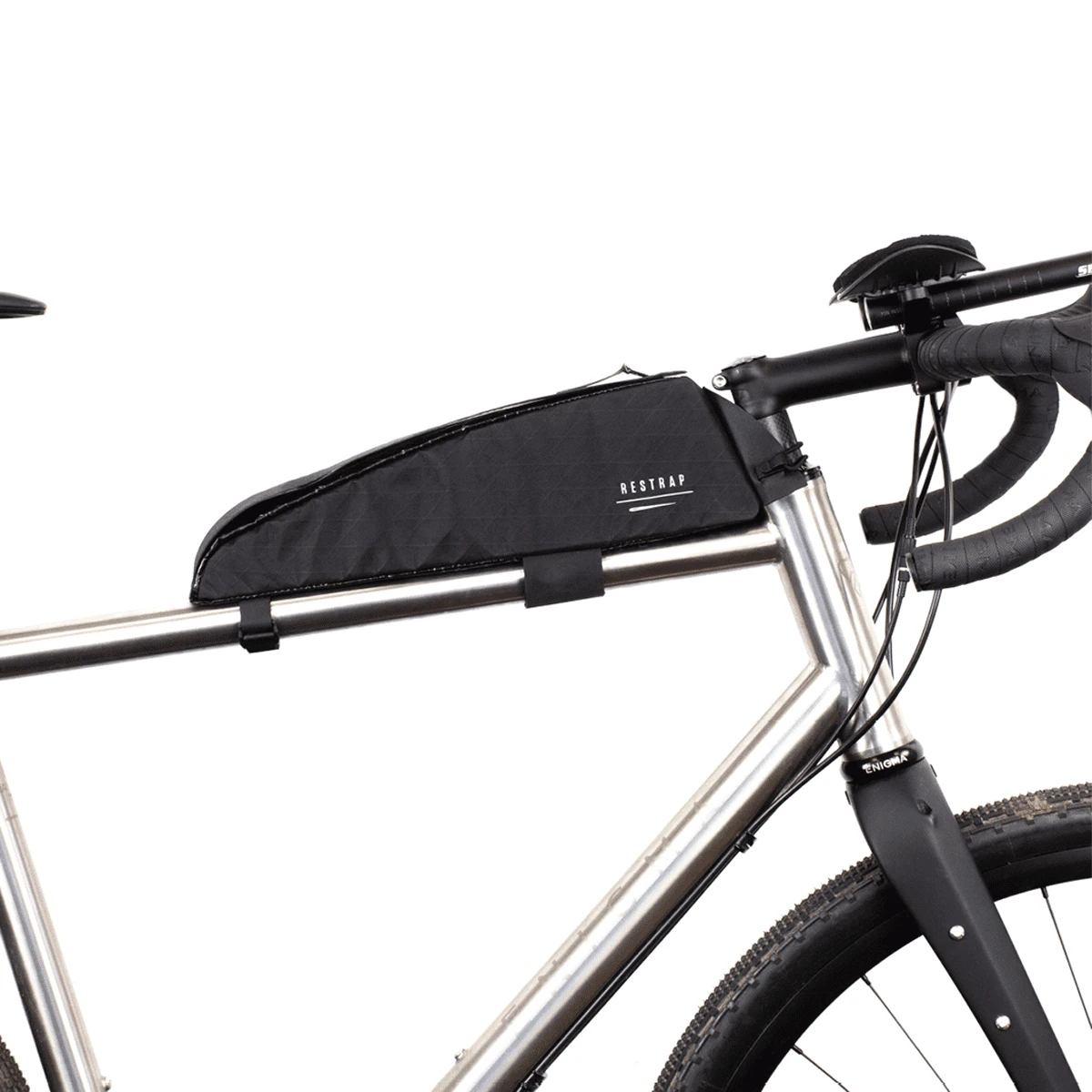 Een verstelbare framebevestiging maakt combinatie met de meeste frametassen en alle Restrap frametassen mogelijk.