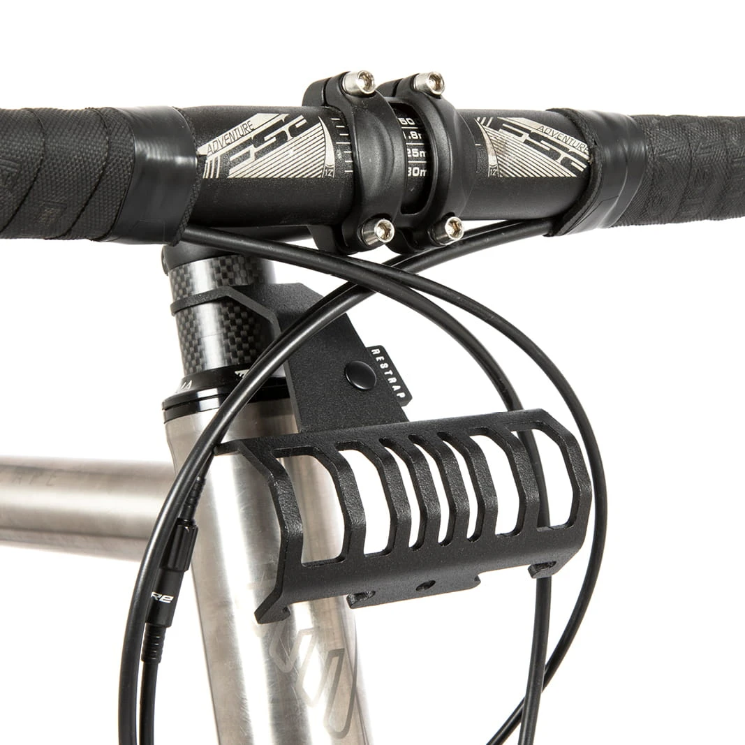 De Bumper Bar is een uniek accessoire dat meerdere functies vervult: Het dient als een vast punt voor het monteren van lichten en dient ook als afstandhouder voor onze reeks stuurtassen, die ze omhoog en weg van het voorwiel duwen. Dit is ideaal voor kleinere fietsen met een lage stapelhoogte of waar de afstand tussen het stuur en de band beperkt is.
