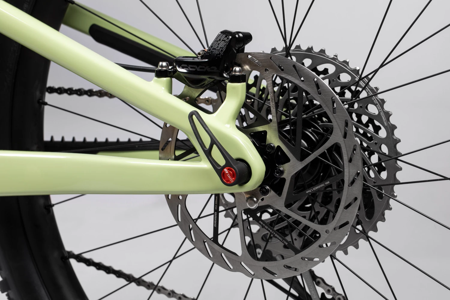 Details die de fiets compleet maken zijn onder andere de kleine beschermkap voor de schokdemper, een schone en eenvoudige kabelgeleiding en een rubberen bescherming van de onderbuis.