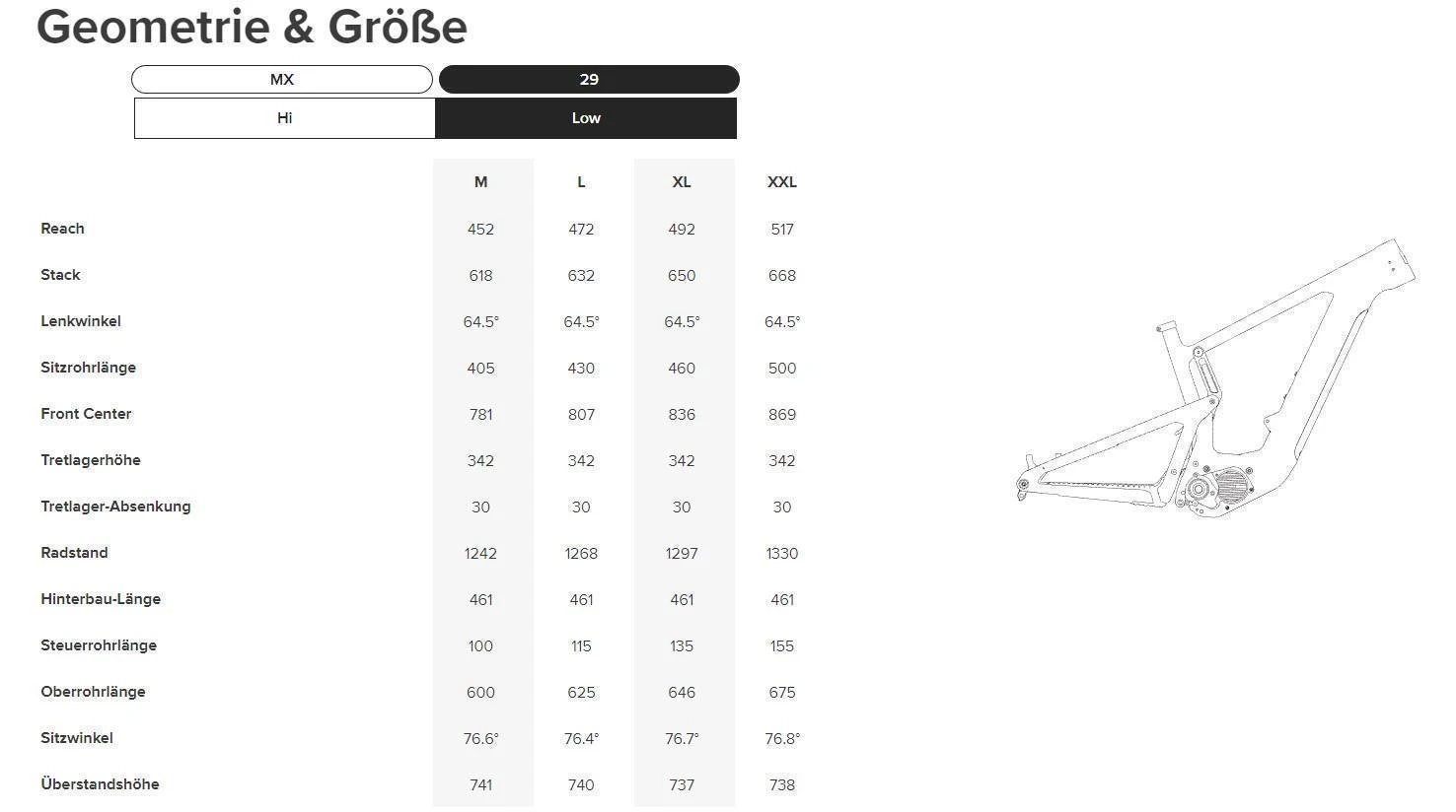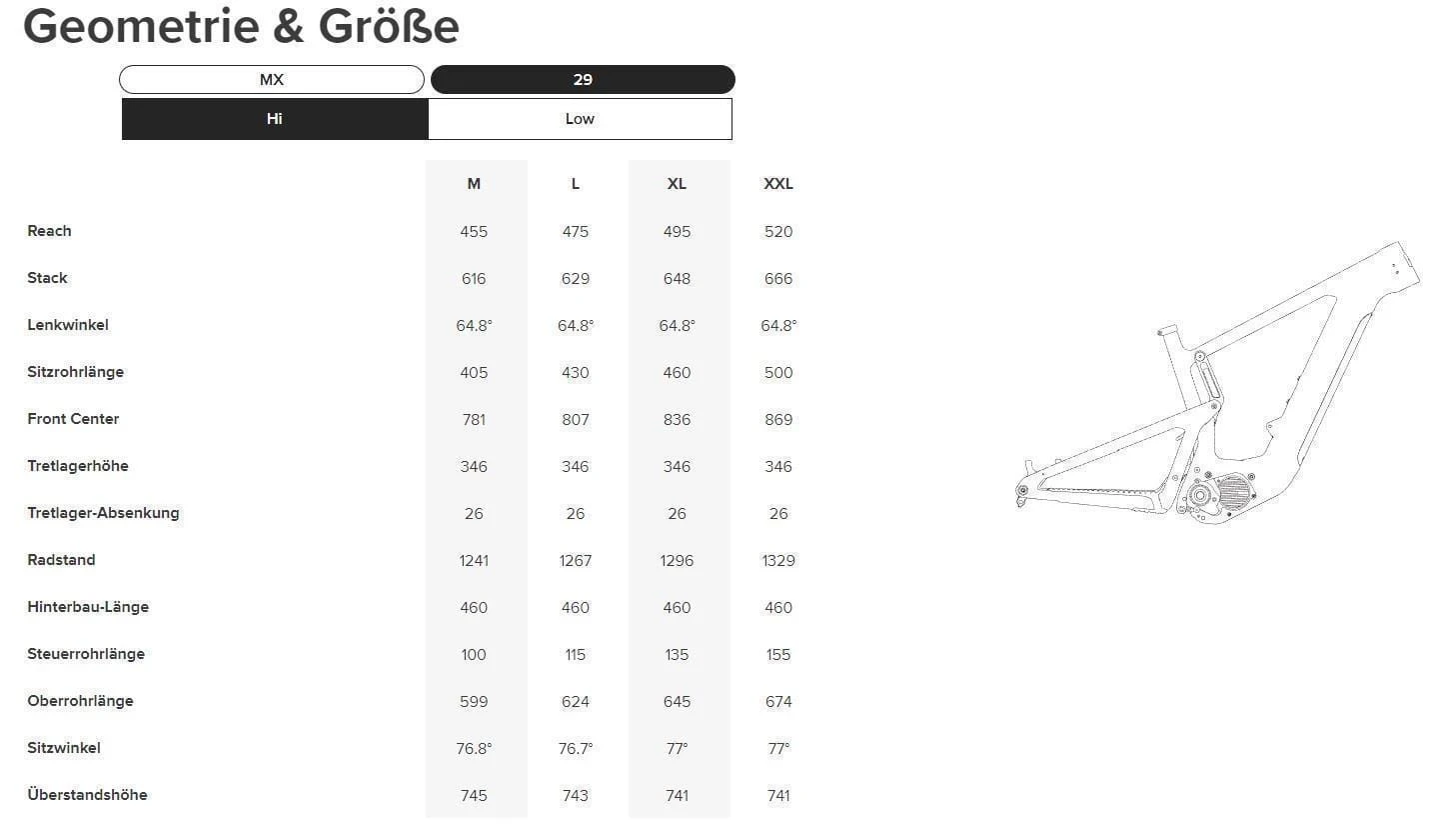 De 29″ en MX versies zijn verkrijgbaar in de maten M – XXL. Framemaat S wordt geleverd met 27,5″ wielen voor en achter.