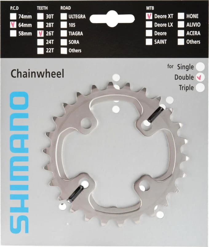 Groot reserve kettingblad met 38 tanden voor de XT 2-speed FC-M785 crank (AK 38-26 gradatie).