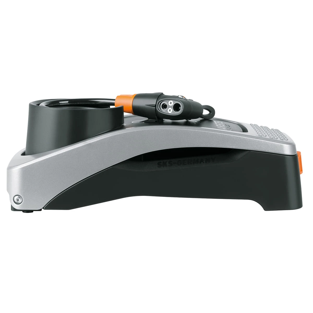 AIRSTEP combineert de deugden van een klassieke voetpomp met state-of-the-art technologie “Made in Germany”. Eersteklas materialen, een doordacht ontwerp en gebruiksvriendelijke kenmerken zoals de grote manometer, de geïntegreerde opbergruimte voor de spiraalslang en de MultiValve kop voor alle ventielsoorten geven de pomp een geheel nieuw, innovatief uiterlijk. Door de aluminium kickbar ergonomisch te bedienen in een rechte, rugvriendelijke houding, kan de hoogst mogelijke effectieve afpompcapaciteit van maximaal 7 bar worden bereikt. Na het pompen wordt de handgreep weer neergeklapt en met een schakelaar vergrendeld. Daarna kan de compacte pomp ruimtebesparend worden opgeborgen dankzij de wandhouder.