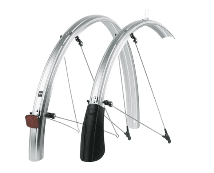 Een echte tour de force! De SKS spatbordset BLUEMELS BASIC (Reflective) integreert niet alleen perfect op de fiets, maar beschermt ook betrouwbaar tegen vuil en spatwater. Dankzij de flexibele sandwichconstructie, waarbij ultrafijne aluminium strips zijn ingebed in een kunststof coating, zijn de spatborden uiterst robuust, bestand tegen buigen en beschermd tegen corrosie.
