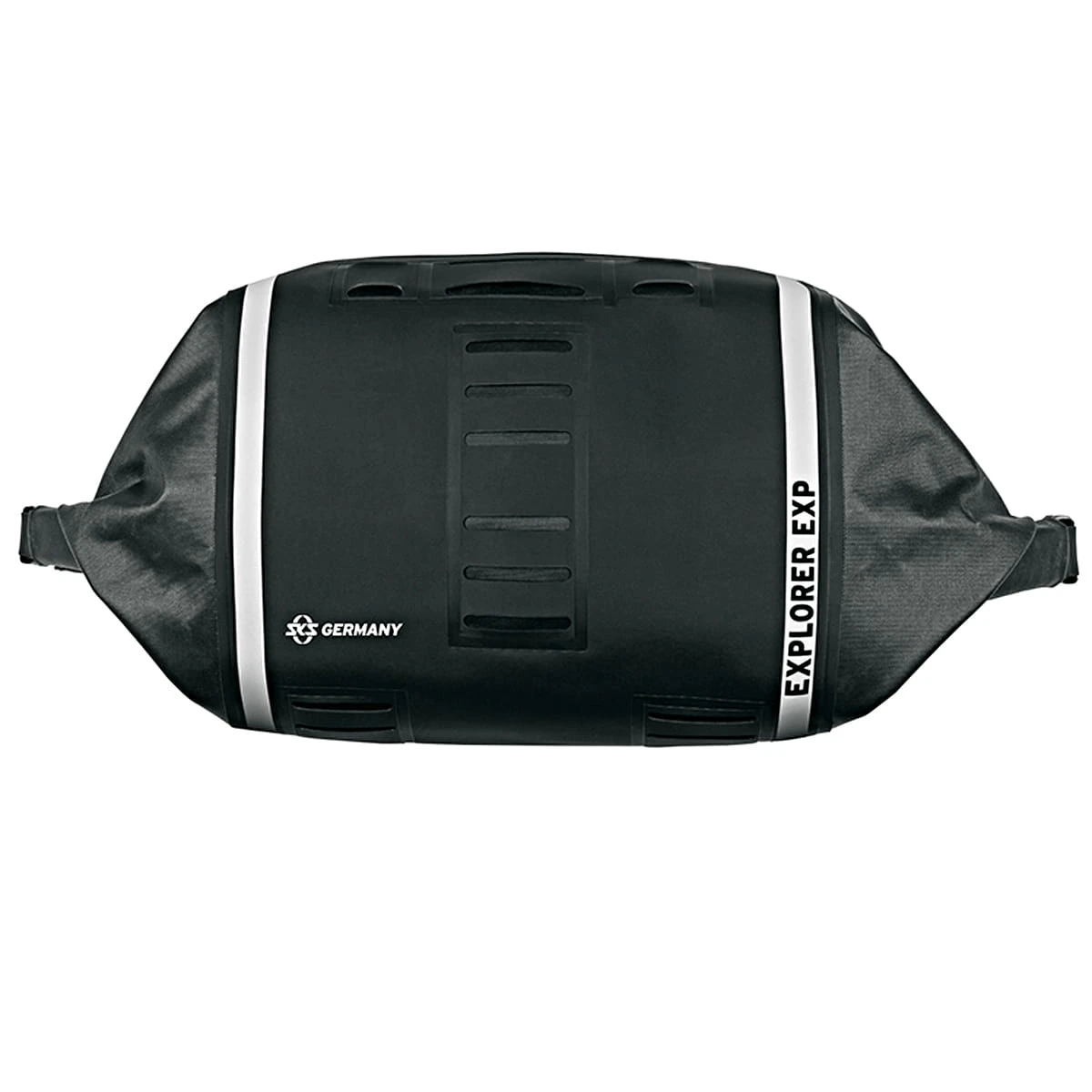 De Explorer EXP stuurtas is een echte frontvechter, want zelfs in weer en wind houdt de waterdichte tas je uitrusting schoon en droog. Hij kan aan beide kanten worden geopend en is dus ideaal om snel bij uw bagage te kunnen. Dankzij de oprolbare zijwanden kan het volume (max. 9 liter) gemakkelijk en variabel worden aangepast. De tas wordt bevestigd met twee met rubber beklede klittenbanden en individueel in te brengen, zachte afstandhouders, zodat de tas aan de meest uiteenlopende sturen en geometrieën kan worden bevestigd. Uitgerust met reflecterende elementen en lussen voor het bevestigen van een steeklamp, zodat er zelfs bij minimale lichtomstandigheden altijd een goede zichtbaarheid is.