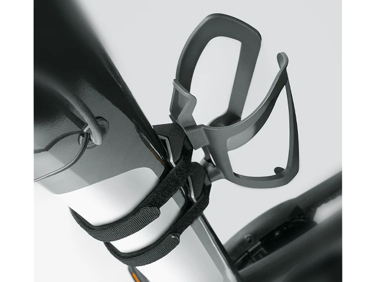 De ANYWHERE bidonhouder doet zijn naam eer aan. Hij kan overal op het fietsframe worden gemonteerd waar geen gaten zijn. De TOPCAGE bidonhouder en riemen voor framediameters van 50-80 mm worden standaard meegeleverd.