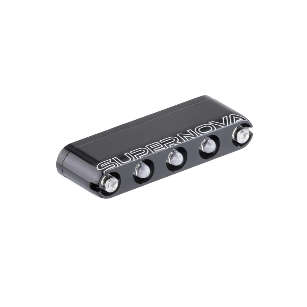 Het eerste achterlicht voor S-pedelecs met geïntegreerd remlicht en nummerplaatverlichting! Tot nu toe waren er tot drie lampen nodig om deze functies te dekken. Bij deze nieuwe generatie achterlichten is alles ingekapseld in een puristische aluminium behuizing om waterdicht te zijn en elegant te kunnen worden geïntegreerd op de motorfiets. Vijf zeer efficiënte LED’s met Supernova’s eigen Dual Beam-technologie maken de S-pedelec van veraf en van opzij goed zichtbaar. Het remlicht schijnt 5 keer zo helder als een standaard achterlicht, verbruikt slechts 0,9 watt en waarschuwt het achteropkomende verkeer op betrouwbare wijze. De homogene nummerplaatverlichting is vrijwel onzichtbaar in de onderzijde van de elegante behuizing geïntegreerd. De robuuste aluminium behuizing van het M99-achterlicht is waterdicht ingekapseld en UV-bestendig geanodiseerd.