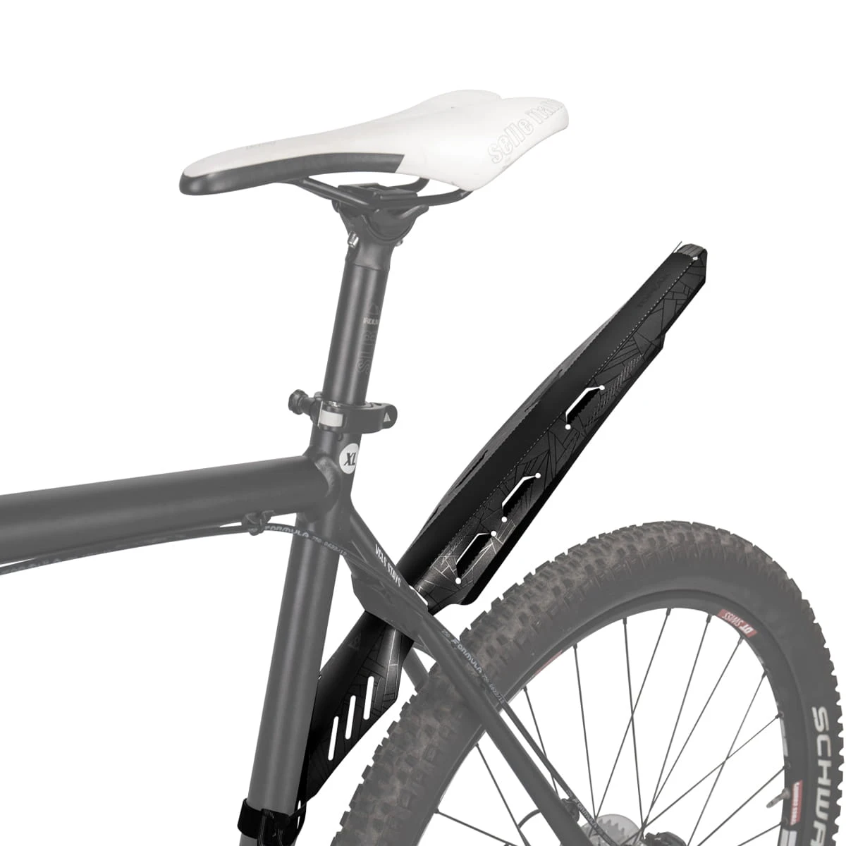 Modderbeschermer van Topeak in een modern ontwerp. Deze flap is stevig bevestigd aan de achterkant van de zadelpen via een klittenband band om te beschermen tegen opspattend vuil van het achterwiel.