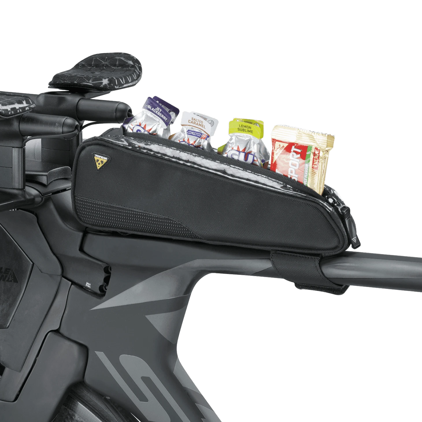 Stijlvolle en slanke top tube tas. Biedt snel en gemakkelijk toegang tot energierepen, smartphone, portemonnee, gereedschap en andere kleine accessoires die snel bij de hand moeten zijn dankzij de transparante hoes.