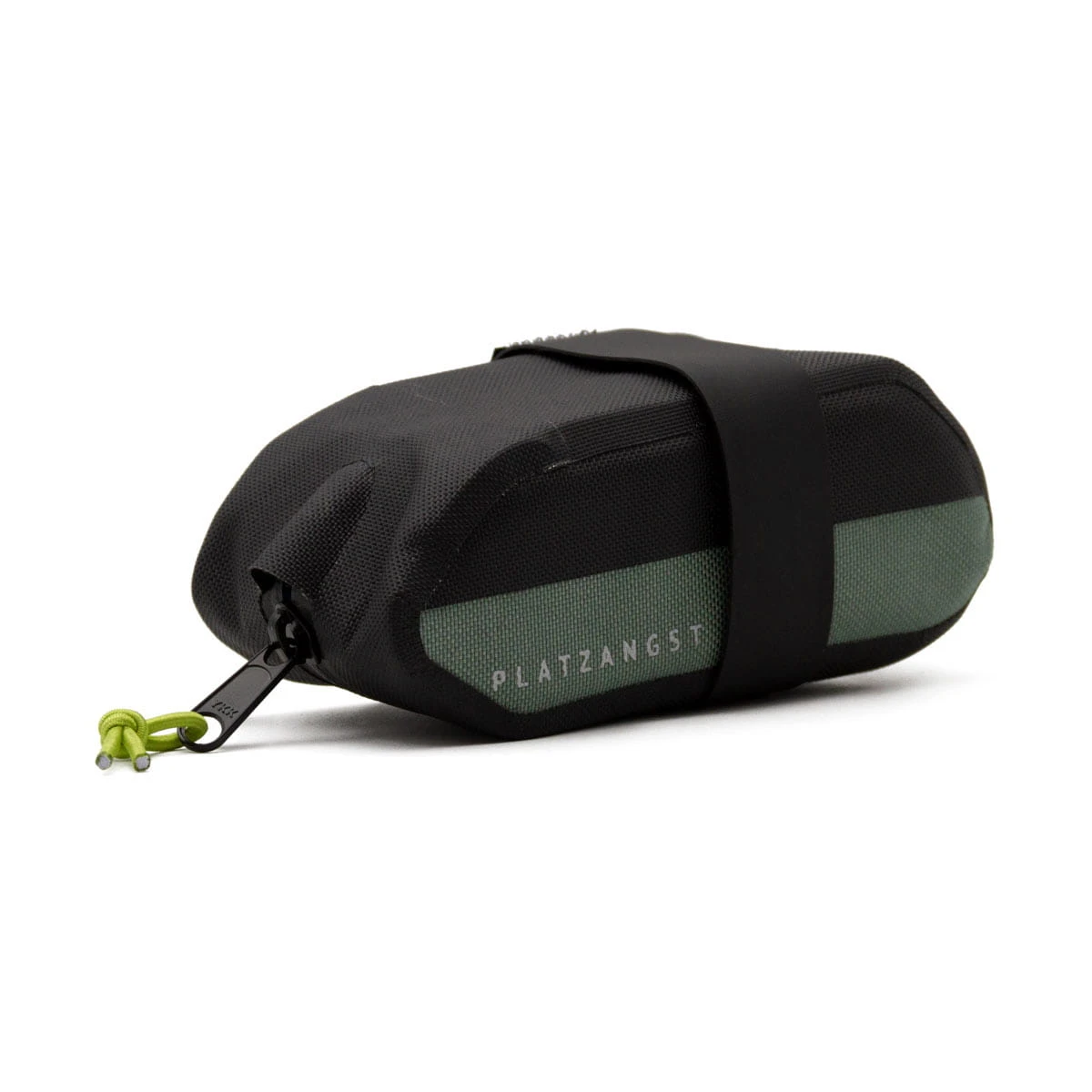 De Platzangst Zadeltas SM is een minimalistische zadeltas van robuust en waterafstotend nylonmateriaal met een waterdichte ritssluiting. Hij biedt ruimte voor bijvoorbeeld gereedschap, een reserve binnenband of andere kleinere gebruiksvoorwerpen. De superlichte en compacte zadeltas SM met klittenbandsluiting rondom is snel en eenvoudig te monteren en compatibel met de meeste zadelframes.